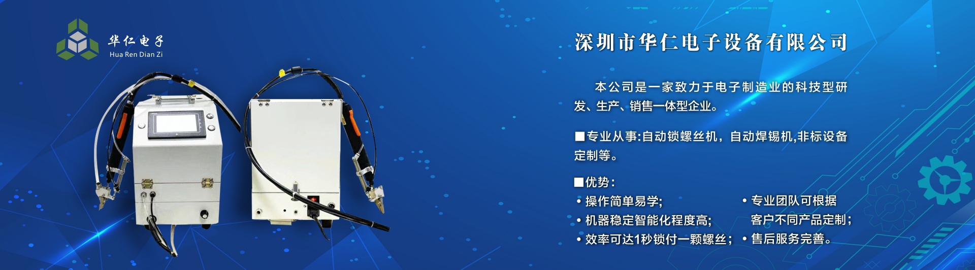 深圳市華仁電子設(shè)備有限公司是一家致力于電子制造業(yè)周邊設(shè)備的科技型研發(fā)、生產(chǎn)、銷售一體的企業(yè),專業(yè)從事:自動鎖螺絲機;自動焊錫機;非標(biāo)設(shè)備定制機等,公司長期以來在行業(yè)中積累了豐富的經(jīng)驗,擁有專業(yè)的研發(fā)、技術(shù)、銷售支持工程團隊、各高級技術(shù)人才為客戶提供優(yōu)質(zhì)產(chǎn)品和服務(wù),同時不斷吸取國內(nèi)外先進技術(shù),更準確及時地為客戶提供優(yōu)質(zhì),性價比高的產(chǎn)品、公司以專業(yè)的售前、售中、售后服務(wù)贏得了客戶的信賴和好評,為客戶提供先進自動化設(shè)備一體式解決方案、
